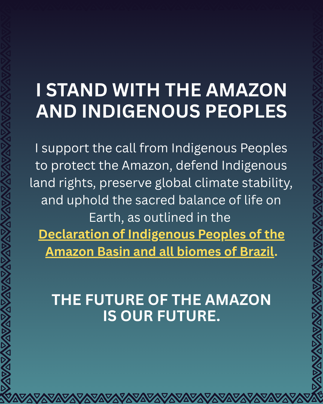 The Amazon is the top stabilizer of global climate and necessary for a livable future. Join us in calling for world leaders to adopt the demands of the Indigenous Declaration.